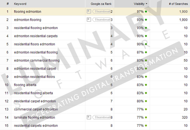 By the end of our two years working together, this Edmonton flooring company went from basically invisible online to dominating local search results. Their website transformed from an online brochure into their best salesperson. The investment they made in proper SEO paid off many times over in new business. And because we built everything the right way, they're still enjoying the benefits even now. Luminary is a top rated Edmonton Web Design and SEO agency. Want to see if we can help your business achieve similar results? Let's talk.